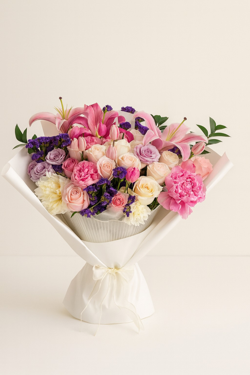 Ramo romántico en tonos rosé y pastel, con flores premium y diseño delicado. Ideal para expresar amor eterno y regalar elegancia. Disponible con flores a domicilio en Santiago de Chile.